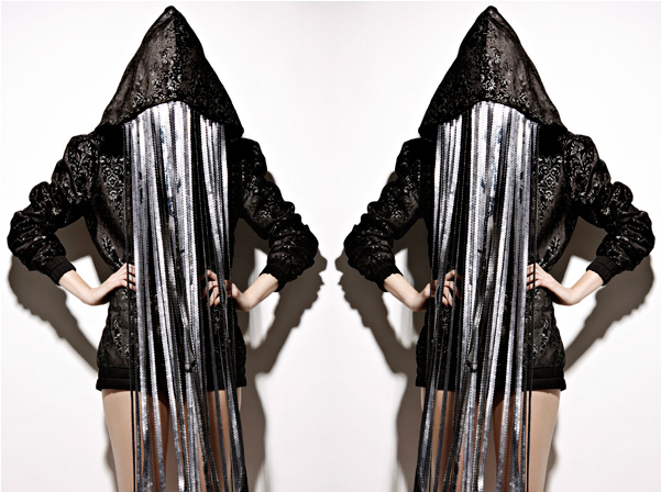 Eva: The [ep_anoui] S/S 11 Collection “ash to ash-dust to dust” was inspired by the main world religions seen through my eyes. White stands for the purity and innocence of women. Each of the contrasting colors symbolizes one of the five religions while the sequined fabrics show a synergy of abstract symbolism of all religions and the flow from one into the other.