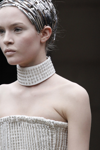 Adorning the feminine frame of a woman’s neck has long been a style behaviour, from small diamonds and pearls to loosely hung, elaborately detailed pendant chains. In recent times we saw the peter-pan collar make a return; the collars were actually available to buy as an accessory of their own. But for this season we’re seeing something much heavier, braver and indomitable, an item of jewellery that really makes a statement: the choker. Seen on the runway of McQueen, YSL and Valentino (to list a few) this neck adornment has been finished with studs, jewels and even feathers, on bare skin and over jumpers. So take it as you wish, and wear it how you like, but remember, this season is all about the neckline.