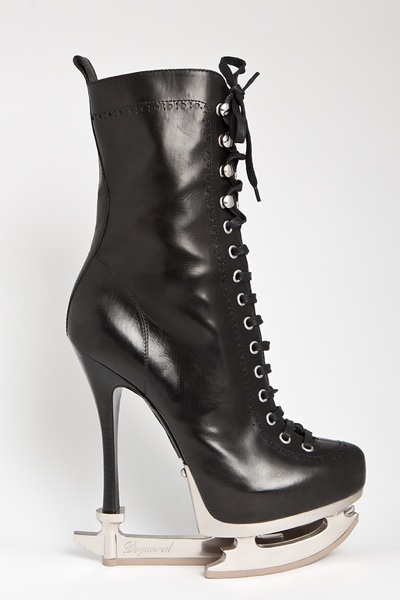 Shoes come in all shapes, sizes and styles, but have you ever seen a pair lined with a blade so sharp it’s fit for the rink… but actually intended for the street? Well low and behold, Dsquared2 have taken footwear to the very next level and in their AW runway we were introduced to the ‘Skate Moss’; footwear that is seriously structurally empowering but physically had us quivering at the knees. Leather, laced and literally with a skating blade attached to its sole, the boots (available in both calf and knee length) are intended for real life wearing, not just as runway exhibits.