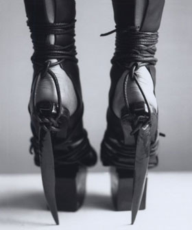 But just look at them. These are works of art. Each creation designed to house the foot are worthy of their own dramatically, starkly lit exhibition space. How you would walk in them, I do not know. But don’t you just want a pair immediately? Even if they took prime position on your bedroom shelf where you could just stare at them? Screw that, let’s go for the mantle piece.