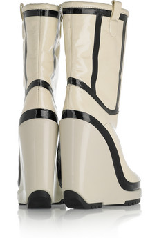 Featuring here is the ‘patent-leather wedge boot’ from the man himself, strikingly bold in the classic monochrome tones of black and white. Imagine those paired with a mac and equally bold 60’s eye liner- maybe not ideal for the field with the bonfire in it, but you’re sure to stand out from the crowd.