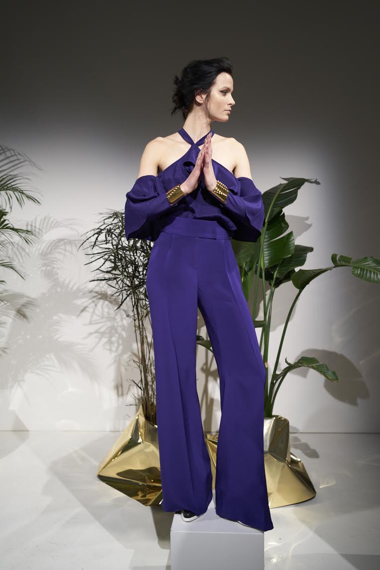 Strapped in a sea of soft petal and sparkling jewel tones…Jay Godfrey speaks dearly to a woman’s heart. Lady-like, sophisticated and gently alluring, a slow assuring of seduction. Pure elegance found in jumpsuits, scented-like ruffles, thin and delicate straps with shimmered dark sparkles, and added accessories, of gloved perfection. Drapery fit for the most royal of hearts.