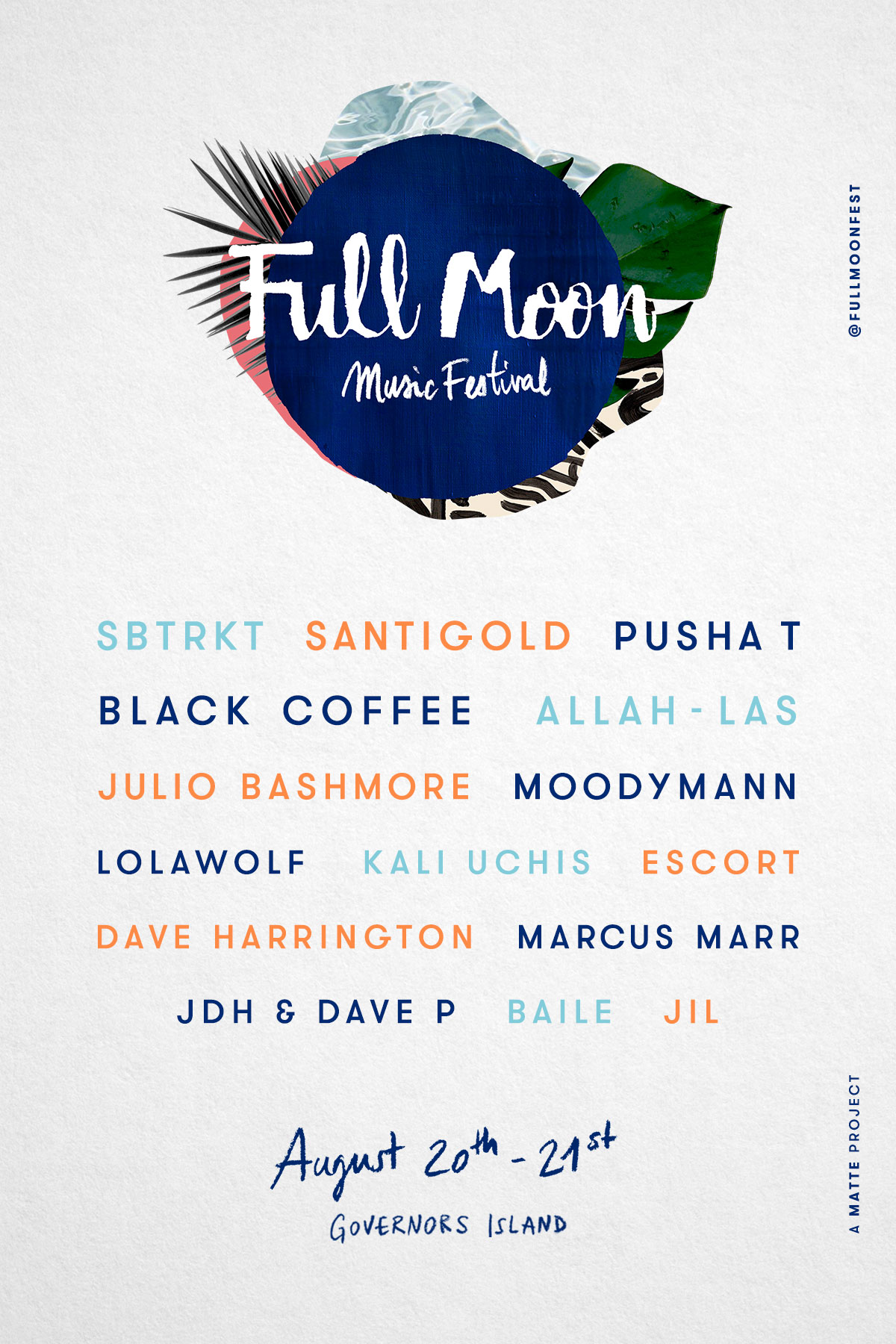 This year’s line-up includes household name musicians SBTRKT, Pusha T, Santigold, Kali Uchis, Moodymann and more. Over the 2 days, Full Moon Fest will transform NYC’s Governors Island into a hub of live music, art and culinary excellence, providing a boutique festival experience.