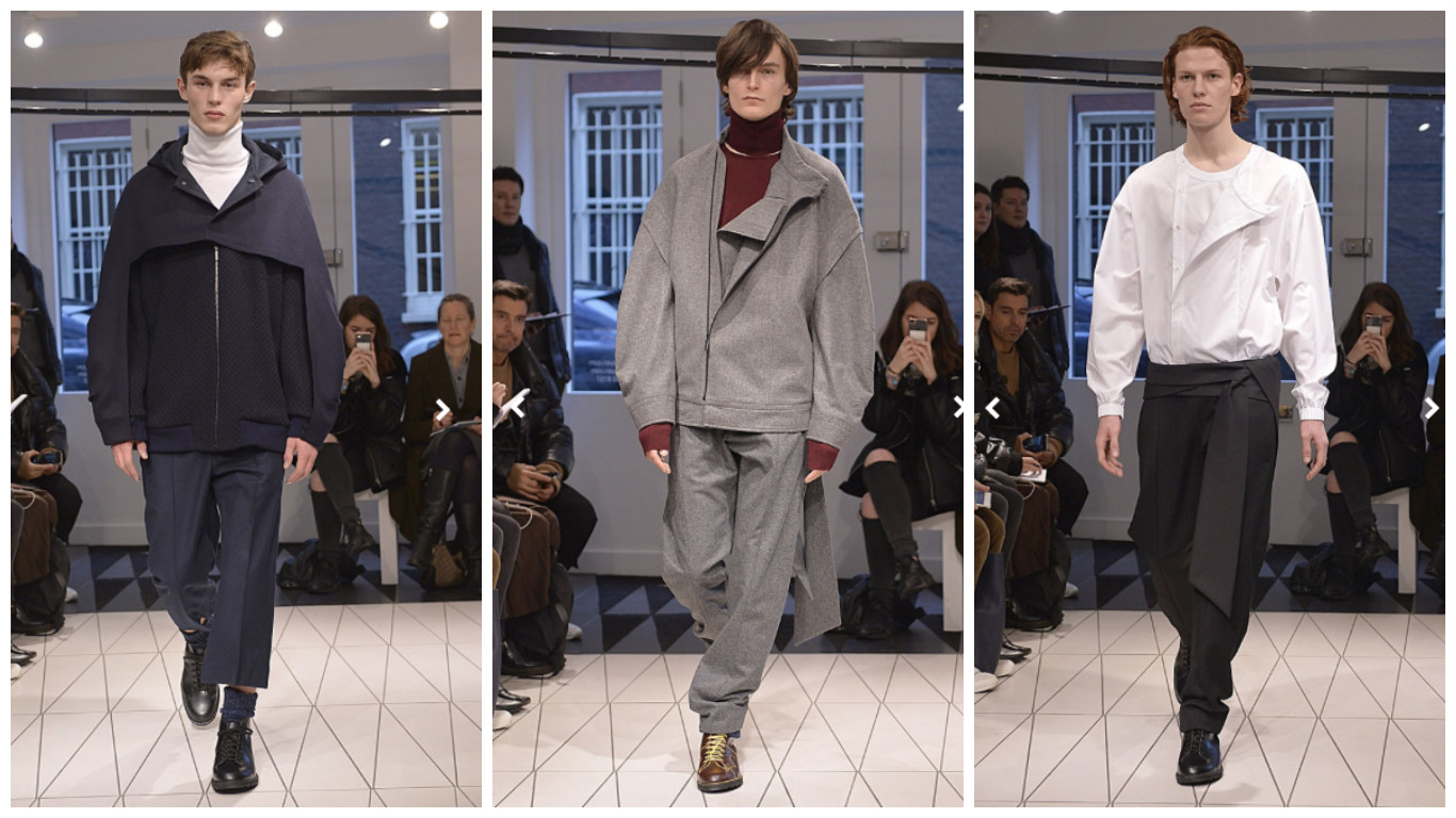 Showcasing his AW17 presentation, Chalayan marked his return on the third day of LFWM. A sea of navy blue, black and grey flooded the runway as the models walked though Chalayan’s Mayfair studio. Inspired (very subtly) by Ancient Greece, we saw loose tailoring with a lot more draping, and softer geometric silhouettes.