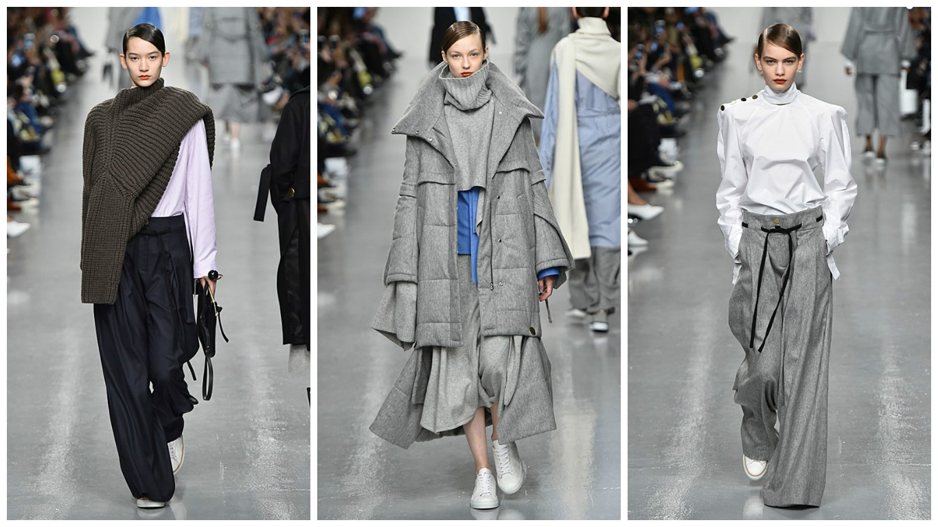 Kicking off the first day of Fashion Week, Choi set the tone for the masculine relaxed tailoring that we saw many designers follow in the succeeding days. Starting off with monochromatic looks -made up of crisp white cotton shirts, grey wide leg trousers and smock dresses – the collection soon transitioned to varying shades of olive khaki, muted orange and cornflower blue.